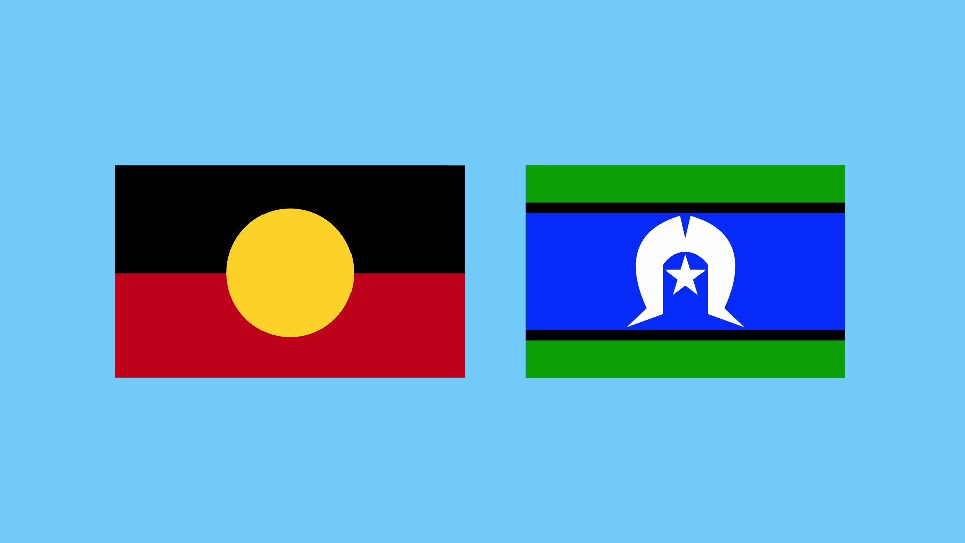 The torres strait islander flag is green for the land, blue for the ocean, black for the people and white to represent peace.